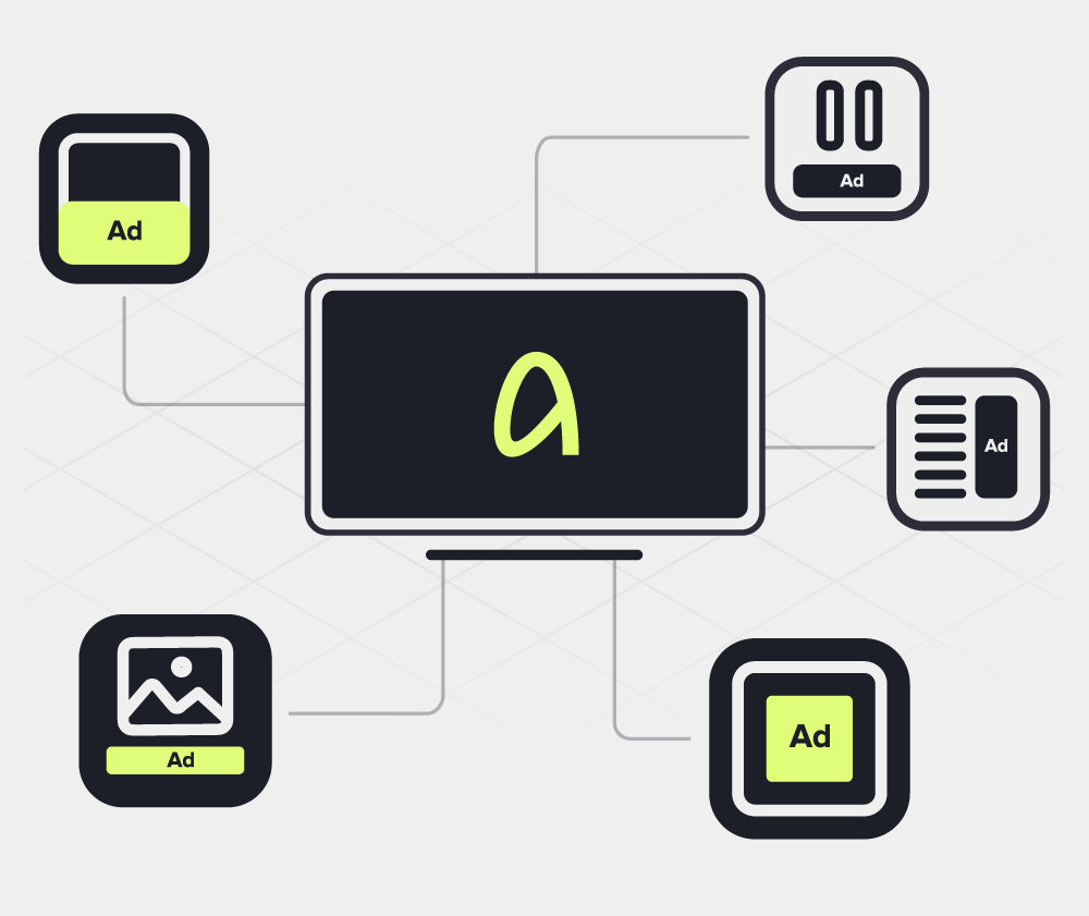 A menu ad is an ad unit that appears within the user interface (UI) of the TV or streaming platform. These are typically ads integrated into the home screen or in the content navigation menu, rather than interrupting their viewing experience.